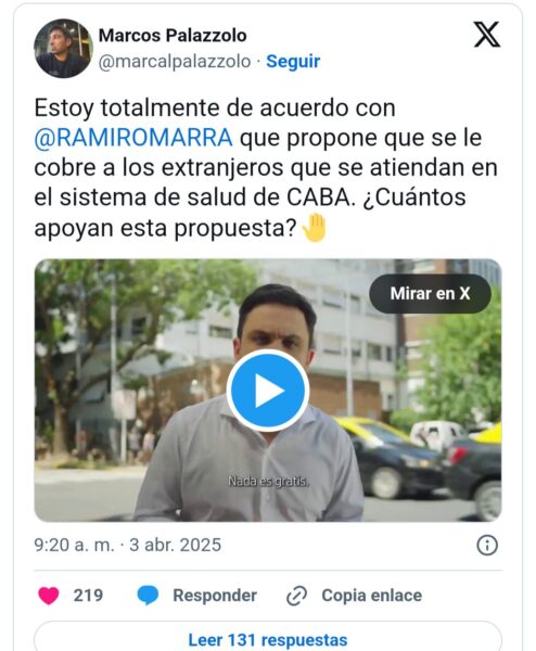 En medio de la campaña legislativa porteña y en televisión, Marra argumentó que el 40 % de las personas que utilizan el sistema público de salud de CABA viven en la provincia de Buenos Aires. Por lo cual propuso que el gobierno bonaerense se haga cargo: “Cuando vienen, le pasás la factura a la Provincia”, sostuvo.