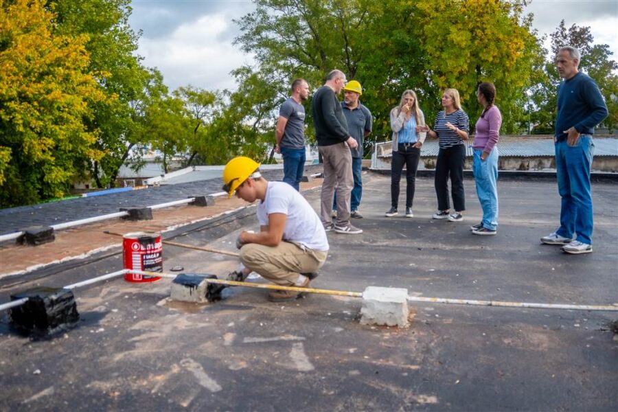 Finalmente , el arquitecto Fernando Pérez Mernes, del equipo técnico del Municipio que supervisa las obras en las diferentes escuelas del Partido, explicó que «se está trabajando en la impermeabilización de cubiertas y el arreglo de patologías que encontramos en la obra y que tienen que ver con mamposterías. Hubo muchas grietas, rajaduras, en las que se realizaron llaves técnicas para poder reparar. En la cubierta se levantaron membranas existentes, se limpió, se pasó una pintura al solvente asfáltica y se colocará la membrana nueva. También vamos a cambiar pluviales y reparar veredas y paredes».