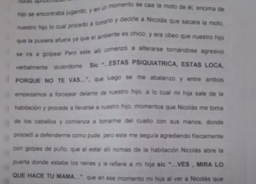 La presentación judicial sostiene que los niños no solo presenciaron episodios de agresión, gritos y amenazas, sino que también habrían quedado expuestos a situaciones de alto impacto emocional dentro del entorno familiar.