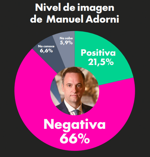 El estudio, basado en 1200 casos en todo el país, muestra un desplome histórico en la consideración popular del exvocero presidencial. Manuel Adorni, quien supo ser una de las espadas comunicacionales más afiladas del oficialismo, alcanzó en abril un pico de 66% de imagen negativa. En contrapartida, su imagen positiva se hundió hasta el 21,5%, marcando una brecha que parece difícil de revertir en el corto plazo.