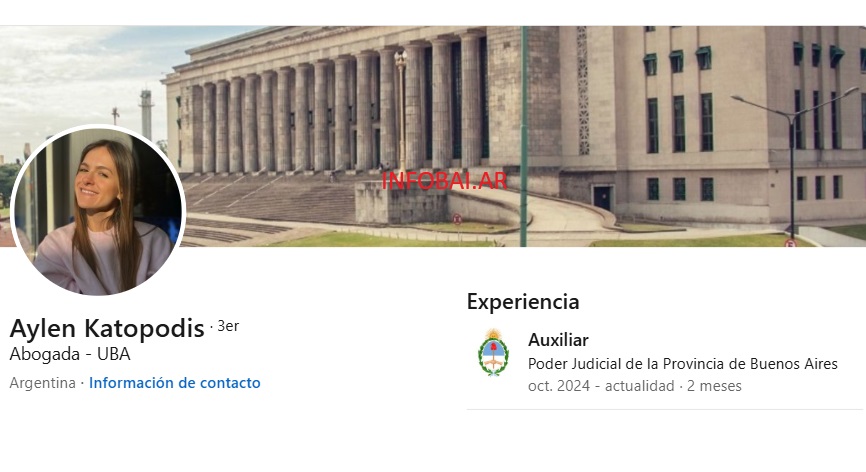 Aylén Katopodis, hija del ministro, se incorporó al poder judicial de la provincia de Buenos Aires en julio de 2018. Recientemente, en octubre de 2024, ascendió a auxiliar dentro del área, acumulando más de seis años de carrera pública con apenas veintisiete años.