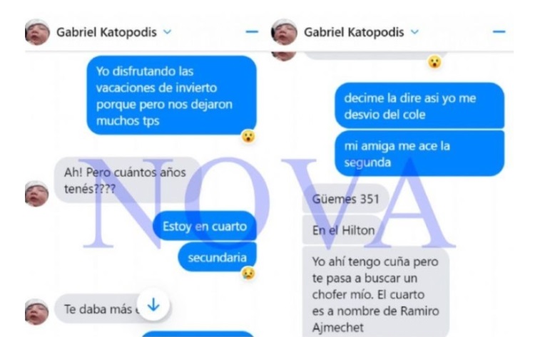 Desde los chats filtrados por la joven, se puede visualizar que ella le dio aviso de su corta edad, sin embargo Katopodis lo pasó por alto. Asimismo, se estima que desde una cuenta de Facebook secundaria se encargó de abordarla, como se presupone que lo habría hecho con más mujeres.