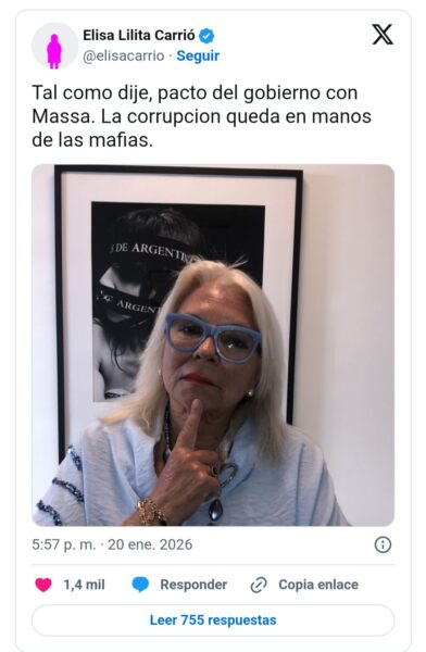 La dirigente de la Coalición Cívica, Elisa Carrió, había denunciado un supuesto acuerdo con el massismo.