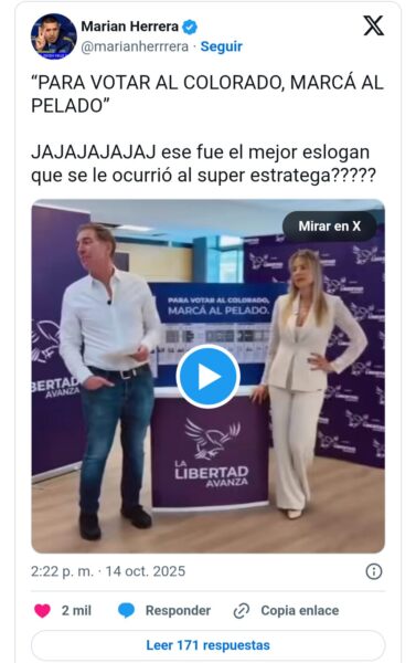 La Libertad Avanza se mandó un nuevo papelón con un eslogan que parece más una invitación subidita de tono que una estrategia electoral: «Para votar al Colorado, marcá al Pelado».
