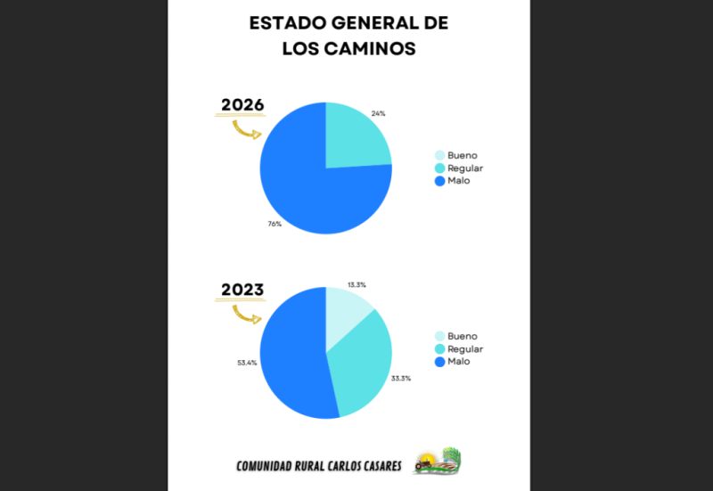 En distritos como Carlos Casares, al igual que en numerosos pueblos del interior de la provincia de Buenos Aires, los caminos rurales cumplen un rol clave para la actividad productiva y la vida cotidiana. Constituyen la principal vía para la salida de la cosecha, el acceso a escuelas rurales, tambos y establecimientos agropecuarios, además de ser el único medio de conexión con centros de salud en situaciones de emergencia.