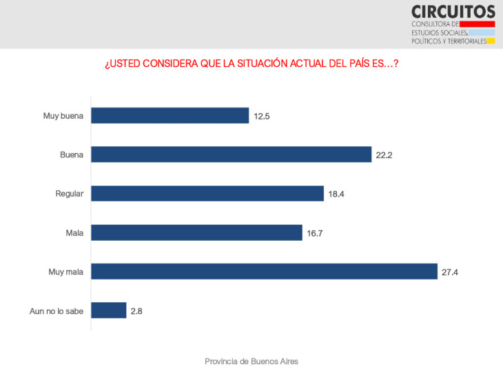 En ese marco, la encuesta muestra como la situación del país preocupa a los encuestados, quienes consideran en su mayoría “muy mala” la situación del país, que en los próximos meses puede “empeorar”, con una imagen “muy mala” del presidente y que “no tienen confianza” en él.