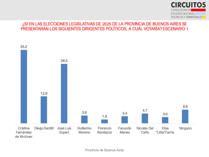 La consultora Circuitos realizó una encuesta de cara a unas elecciones en la Provincia de Buenos Aires que muestran un escenario complejo, atrapado por la interna en el peronismo y que sucumbe con la incertidumbre de si La Libertad Avanza conformará una alianza con el PRO con la derrota del “kirchnerismo” cono causa común.