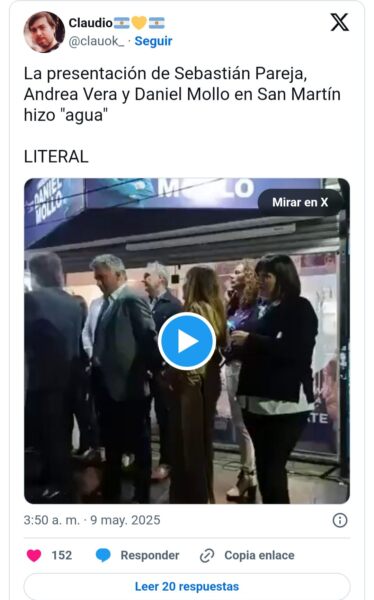 El relator histórico de Boca, Daniel Mollo, y el armador político bonaerense de La Libertad Avanza, Sebastián Pareja, inauguraron un nuevo local en el municipio perteneciente a la Primera Sección electoral con una inesperada reacción: en disconformidad, uno de los vecinos presentes arrojó un balde de agua