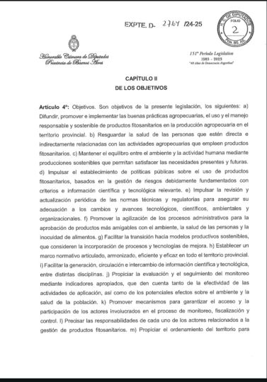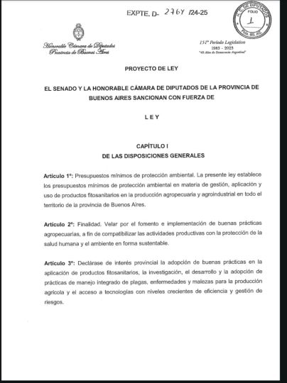 Con estado parlamentario desde el 25 de septiembre de 2024, el proyecto de ley de presupuestos mínimos de protección ambiental en materia de gestión, aplicación y uso de fitosanitarios en la producción agropecuaria y agroindustrial presentado por la diputada radical y productora rural de la provincia de Buenos Aires, Silvina Vaccarezza, encendió las alarmas de todas las organizaciones ambientales y asambleas de vecinos al autorizar las fumigaciones con agrotóxicos a tan solo diez metros de los centros poblados, escuelas rurales, áreas protegidas, reservas naturales, cursos y espejos de agua.