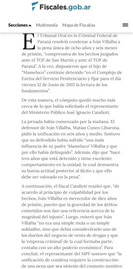 En 2014 Matías Cúneo Libarona fue el abogado defensor de Mameluco Villalba y su hijo Iván en un juicio por narcotráfico que llevó adelante el Tribunal Oral en lo Criminal Federal nro. 3 de San Martín. Ambos fueron encontrados culpables y condenados.