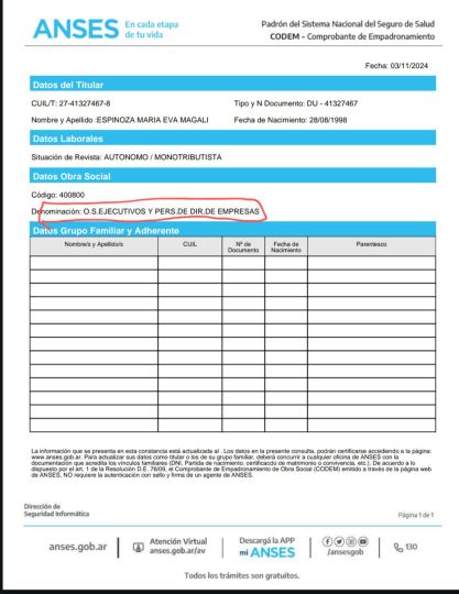 La plata fue abonada desde la cuenta personal de la hija que, en el año 2021, facturaba a través de una sociedad vinculada con su propia familia al Colegio de Odontólogos de la provincia de Buenos Aires tal hace dos años. En el domicilio legal de la sociedad, ubicado en Ciudadela, vivía un familiar de la familia Espinoza.