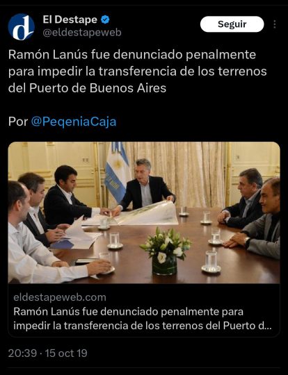 Además, a Lanús se lo imputó por el proceso de transferencia a la Ciudad de los terrenos que conforman la isla Demarchi y el Puerto Sur, ubicados en la Costanera Sur, para realizar un desarrollo inmobiliario.